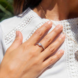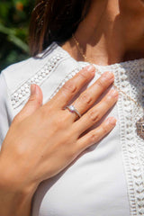 The Melia Ring belongs to our treasure trove of strongly sustainable, ethical, environmentally friendly, and conflict-free jewellery. She lives in our carefully curated collection of one-of-a-kind vintage jewellery pieces. A vintage piece of jewellery has many stories to tell. Tales of romance, love, family, happiness and sometimes loss and endurance. Handed down from person to person, generation to generation. The Melia Ring is a piece of wonderful history.