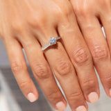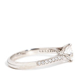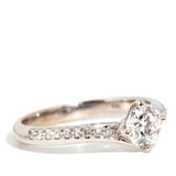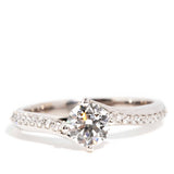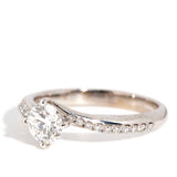 Evoking memories of love forged in deepest winter, the stunning 18 carat white gold Melia Ring holds an enchanting brilliant diamond at her apex, held aloft by graceful crossover shoulders shimmering with cascading diamonds. A wonderful dance of fractal light.