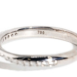 The round brilliant cut diamonds are estimated to total 0.90 carats and details are listed below. The central round brilliant cut diamond is estimated to weigh 0.72 carats with F colour and P1 clarity grades. The round brilliant cut diamonds in the band are estimated to total 0.18 carats with F colour and SI to P1 clarity grades.
