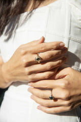 The Areti Ring belongs to our treasure trove of strongly sustainable, ethical, environmentally friendly, and conflict-free jewellery. She lives in our carefully curated collection of one of a kind vintage jewellery pieces. A vintage piece of jewellery has many stories to tell. Tales of romance, love, family, happiness and sometimes loss and endurance. Handed down from person to person, generation to generation. The Areti Ring is a piece of wonderful history.