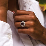 The Dolly Ring is part of our trove of strongly sustainable, environmentally friendly, and conflict-free jewellery. She lives in our carefully curated collection of one-of-a-kind vintage treasures - polished and restored with care by our talented jewellers, restoring them to their former glory.