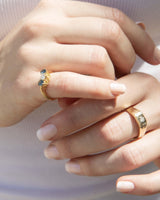 The Elara Ring is part of our trove of strongly sustainable, environmentally friendly, and conflict-free jewellery. She lives in our carefully curated collection of one-of-a-kind vintage treasures - polished and restored with care by our talented jewellers, restoring them to their former glory.