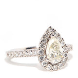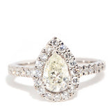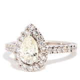 Thoughtfully crafted in gleaming platinum, this stunning contemporary cluster ring has a fabulous IGI-certified pear cut diamond with a shimmering border of round brilliant diamonds and a plethora of diamonds cascading down the band. This splendour is named The Helina Ring. She is a wonderful symbol of commitment and love, perfect for marking momentous life occasions and destined to endure for eternity.