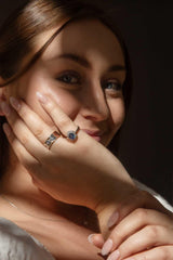 The Delaney Ring belongs to our treasure trove of strongly sustainable, ethical, environmentally friendly, and conflict-free jewellery. She lives in our carefully curated collection of one of a kind vintage jewellery pieces. A vintage piece of jewellery has many stories to tell. Tales of romance, love, family, happiness and sometimes loss and endurance. Handed down from person to person, generation to generation. The Delaney Ring is a piece of wonderful history.