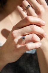 The Decima Ring belongs to our treasure trove of strongly sustainable, ethical, environmentally friendly, and conflict-free jewellery. She lives in our carefully curated collection of one of a kind vintage jewellery pieces. A vintage piece of jewellery has many stories to tell. Tales of romance, love, family, happiness and sometimes loss and endurance. Handed down from person to person, generation to generation. The Decima Ring is a piece of wonderful history.