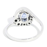 A summer's dream of sapphire and diamond, The Decima Ring evokes the serene beauty of the Aegean Sea. Her Ceylon sapphire, a mesmerising ocean-blue, is held aloft by a swirl of 18 carat white gold, an embrace finishing in a sweep of sparkling diamond.