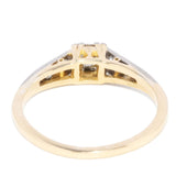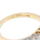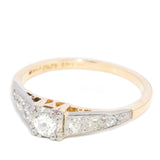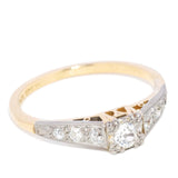 The Hanna ring, a 1950s vintage diamond darling, gleams with ethereal allure. Crafted from 18 carat gold, she cradles a shimmering transition cut diamond, imbued with whispers of history and renewal, and single cut diamonds down the shoulders. Her radiance dances like sunlit ripples on a serene lake, igniting dreams and desires.