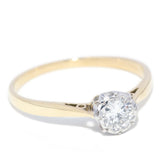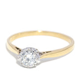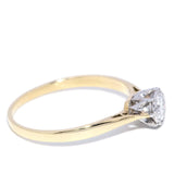 Exuding 1950s allure, Ksenia was forged by artisans. She blossoms with a solitary diamond cradled in 18 carat yellow and white gold, weaving vintage elegance with modern beauty. Her luminescent grace is a tribute to sustainable craftsmanship and resplendent brilliance.
