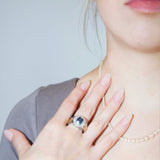 The Filip Ring is part of our trove of strongly sustainable, environmentally friendly, and conflict-free jewellery. She lives in our carefully curated collection of one-of-a-kind vintage treasures - polished and restored with care by our talented jewellers, restoring them to their former glory.