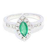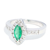 Sierra 1990s Marquise Emerald & Diamond Ring 18ct White Gold