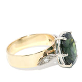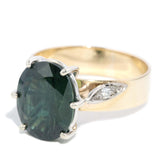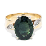 Vintage Verda whispers stories of yesteryears, her deep green sapphire cradled by brilliant diamonds. Embraced by 9 carat gold, she bears the scars and smiles of distant journeys. Her soft glow recalls nostalgic sunlit memories, bringing both history and allure to life.