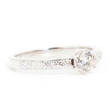Lovingly forged in 18 carat white gold, this opulent vintage engagement ring features an impressive 0.45 carat round brilliant cut diamond raised up from an elegant band in a six claw setting, flanked by glittering rows of round brilliant diamonds. We have named this vintage splendour The Ursla Ring. The perfect balance of refinement and class, and would make the most perfect vintage engagement ring.
