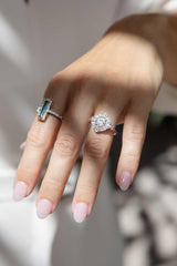 The breathtaking Suri Ring showcases a darling green tourmaline surrounded by shimmering diamonds, with a dual-tone design that enhances her contemporary charm. A radiant interplay of colours and light, she symbolizes love, renewal, and enduring elegance in every detail.