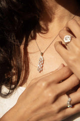 A cascading chandelier of light, each diamond held within our gorgeous Kiran Pendant is a star in a constellation of gold. Meticulously crafted in 18-carat gold, she whispers of timeless elegance and captivating allure. With every delicate movement, she shimmers and dances, a mesmerising symphony of brilliance. Whether adorning your neckline for a grand soiree or adding a touch of magic to an ordinary day, Kiran is the embodiment of effortless grace and the perfect expression of love's brilliance.