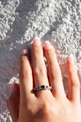 From our Freedom range, The Addie Ring is a joyful celebration of design and colour. Stunningly crafted in 18 carat white gold she reminds us of bright summer skies and midnight seas. Six stunning sapphires and one sparkling diamond set differently come together to create something special. Her quirky individuality will attract the fearless and the fun.