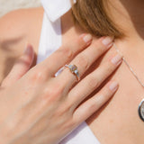 The Danyel Ring belongs to our treasure trove of strongly sustainable, ethical, environmentally friendly, and conflict free jewellery. She lives in our carefully curated collection of one of a kind vintage jewellery pieces. A vintage piece of jewellery has many stories to tell. Tales of romance, love, family, happiness and sometimes loss and endurance. Handed down from person to person, generation to generation. The Danyel Ring is a piece of wonderful history