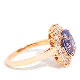 Embracing the allure of twilight, this Azure 18ct Gold Ceylon Sapphire & Diamond Halo Ring enchants with every glance. Bathed in light, the exquisite sapphire sparkles like the ocean’s depths, while the shimmering diamonds whisper stories of love. A timeless treasure, it invites you to wear your dreams and dance among the stars.