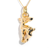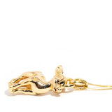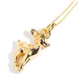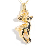Forged in 18 carat yellow gold, this darling vintage piece is a wonderful pendant in the shape of a spotted deer with gorgeous joyous eyes. She is named The Bambina Pendant & Chain. Threaded with a fine chain, she is an adorable adornment for those who dare to dream and as charming as the one who wears her.