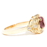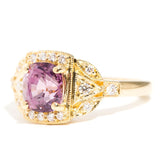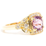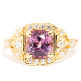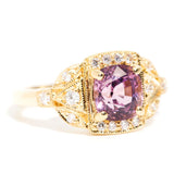 Lovingly crafted in 18 carat yellow gold, this gorgeous vintage inspired spinel and diamond cluster ring features an alluring 1.92 carat bright purplish pink cushion cut Spinel and is encompassed by a plethora of sparkling round brilliant cut diamonds. We have named this gorgeous piece The Natasha Ring. The Natasha Ring is thoughtfully designed and lovingly crafted to be as unique as the person who wears her. The Natasha Ring is perfectly suited to be a romantic engagement ring or a ring to mark a momentous occasion. She will surely become a treasured heirloom.