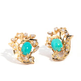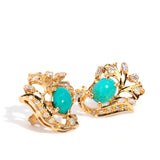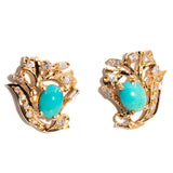 Bailey Circa 1940s Turquoise & Diamond Earrings in 18ct Gold