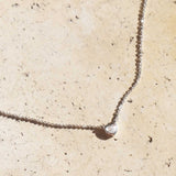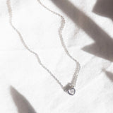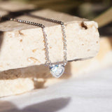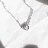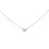 Crafted in 18 carat white gold, this light contemporary necklet is a fine chain holding a wonderful pendant in the shape of a heart holding a heart shape round brilliant cut diamond. The Capri Necklet is finished with a darling lobster claw clasp and looks lovely perfect alone or layered with other fine jewellery.
