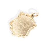 The gorgeous Elizabeth shield pendant is crafted in 12 carat yellow gold engraved with a delightful award of music memoriam dated back to 1866. The edges of this wonderful piece are styled like swathes of billowing ribbon and finished with an elegant hoop bail.