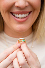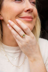 The Arlene Ring is part of our trove of strongly sustainable, environmentally friendly, and conflict-free jewellery. She lives in our carefully curated collection of one-of-a-kind vintage treasures - polished and restored with care by our talented jewellers, restoring them to their former glory.