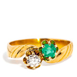 Arlene 1900s Emerald & Old Cut Diamond Toi Et Moi Ring 22ct