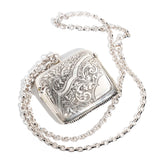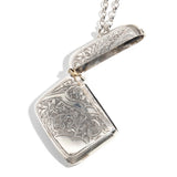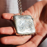 Crafted in sterling silver, this nostalgic 1903 Edwardian Era antique vesta matchbox is engraved with a gorgeous paisley pattern and threaded with a lovely medium contemporary chain. We have named her The Arthur Matchbox & Chain. She is a wonderful callback to a long-gone era.