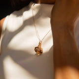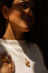With a stunning sun-kissed citrine in 9 carat rose gold, our Nathalia Pendant is a symbol of optimism. Her ribboning gold artistry, the perfect accompaniment for her vibrant dance of light and color.