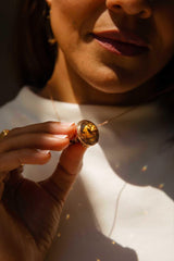 The Nathalia Pendant belongs to our treasure trove of strongly sustainable, ethical, environmentally friendly, and conflict-free jewellery. She lives in our carefully curated collection of one of a kind vintage jewellery pieces. A vintage piece of jewellery has many stories to tell. Tales of romance, love, family, happiness and sometimes loss and endurance. Handed down from person to person, generation to generation. The Nathalia Pendant is a piece of wonderful history.