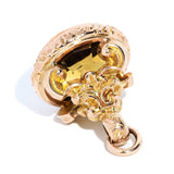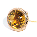 The round citrine measures 17.50 millimetres, is estimated to weigh 17.40 carats and is a strong yellow colour.