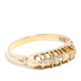 The four old cut and one round brilliant cut diamonds are estimated to weigh 0.20 carats, are G to J colour and SI to P2 clarity grades.