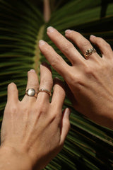 The Emilia Ring is part of our trove of strongly sustainable, environmentally friendly, and conflict-free jewellery. She lives in our carefully curated collection of one-of-a-kind vintage treasures - polished and restored with care by our talented jewellers, restoring them to their former glory.