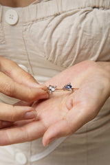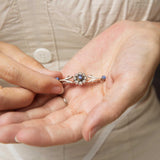 A blossoming masterpiece, our Briella Brooch is a delicate floral bouquet capturing the essence of nature's beauty. Her petals of old cut diamonds form a blooming flower, accented by the royal blue of sapphires. With intricate 15 carat goldwork and graceful design, Briella evokes a sense of timeless elegance, making her a truly enchanting accessory.
