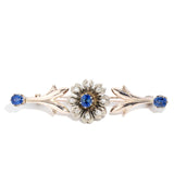 Briella 1930s Sapphire & Old Cut Diamond Brooch 15ct Gold