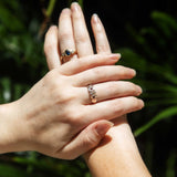 The Gloria Ring belongs to our treasure trove of strongly sustainable, ethical, environmentally friendly, and conflict-free jewellery. She lives in our carefully curated collection of one-of-a-kind vintage jewellery pieces. A vintage piece of jewellery has many stories to tell. Tales of romance, love, family, happiness and sometimes loss and endurance. Handed down from person to person, generation to generation. The Gloria Ring is a piece of wonderful history.