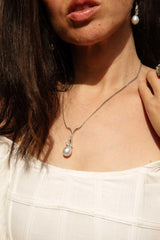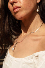 Graceful and radiant, the 18 carat white gold Aria Earrings feature luminous South Sea pearls suspended beneath delicate diamond accents. Evoking the elegance of flowing water and sparkling starlight, they are a timeless expression of beauty and sophistication.