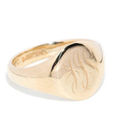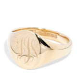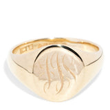 Elegant in her simplicity, the 9 carat gold Seth signet ring exudes timeless sophistication. Featuring a smooth oval face with delicate engraved initials, she carries a personal touch and a classic appeal. Perfect as a meaningful gift or a statement of heritage, she is a refined piece that seamlessly blends tradition and style.