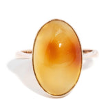Our stunning Maleah Ring is crafted in 9 carat rose gold and adorned with a captivating agate cabochon. A sunstone basking in the light of a summer sunset, warm, orange hues complemented by the soft glow of her rose gold setting. Maleah is a reminder of the beauty of natural gemstones, a jewel that will add a touch of heat and vibrancy to any ensemble.