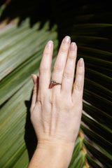 The Angie Ring belongs to our treasure trove of strongly sustainable, ethical, environmentally friendly, and conflict-free jewellery. She lives in our carefully curated collection of one of a kind vintage jewellery pieces. A vintage piece of jewellery has many stories to tell. Tales of romance, love, family, happiness and sometimes loss and endurance. Handed down from person to person, generation to generation. The Angie Ring is a piece of wonderful history.