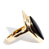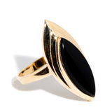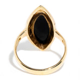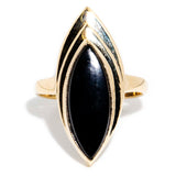 The marquise black onyx measures approximately 18.6x6.9 millimetres. Condition consistent with age and wear.