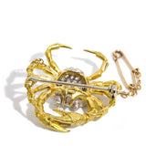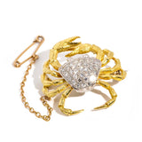 The Sebastian Brooch is a delightful illustration of spirited whimsy. Crafted in 18 carat gold, his body is embellished with gorgeous diamonds to skip in the sun's rays. Sebastian is a crab with decadence and swagger.