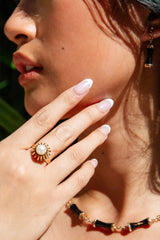 The Amelie Ring belongs to our treasure trove of strongly sustainable, ethical, environmentally friendly, and conflict-free jewellery. She lives in our carefully curated collection of one-of-a-kind vintage jewellery pieces. A vintage piece of jewellery has many stories to tell. Tales of romance, love, family, happiness and sometimes loss and endurance. Handed down from person to person, generation to generation. The Amelie Ring is a piece of wonderful history