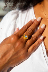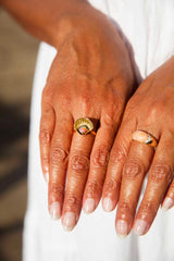 The Trudy Ring belongs to our treasure trove of strongly sustainable, ethical, environmentally friendly, and conflict-free jewellery. She lives in our carefully curated collection of one-of-a-kind vintage jewellery pieces. A vintage piece of jewellery has many stories to tell. Tales of romance, love, family, happiness and sometimes loss and endurance. Handed down from person to person, generation to generation. The Trudy Ring is a piece of wonderful history.