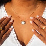 The Trudy Ring beckons you to hold close your ear and listen as waves lap on the sandy beach in a soft, soothing rhythm. Nestled in the shells warm embrace, the opal flashes vivid hues of red, blue and green. Crafted in 14 carat gold, she is the perfect piece for the collector of vintage whimsy.