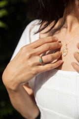 The Nadia Ring belongs to our treasure trove of strongly sustainable, ethical, environmentally friendly, and conflict-free jewellery. She lives in our carefully curated collection of one of a kind vintage jewellery pieces. A vintage piece of jewellery has many stories to tell. Tales of romance, love, family, happiness and sometimes loss and endurance. Handed down from person to person, generation to generation. The Nadia Ring is a piece of wonderful history.