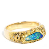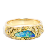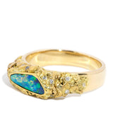 From the heart of the Australian Outback comes our Nadia Ring. Her opal flashes vivid blue, green, and red, resplendent against diamond-accented gold that retains its natural elegance. Inspired by nature’s whimsy, she is a breathtaking piece, perfectly capturing the beauty of Australia’s sunburnt landscapes.