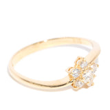 Our lovely Guinevere Ring is beautifully crafted in 18 carat yellow gold, with a cluster of sparkling diamonds that resemble a delicate flower in full bloom. Each shimmers like a dewdrop, capturing the heart with enchanting beauty.