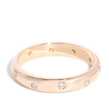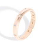 Our Astrid Band is the mix of modern elegance and subtle luxury. With delicate diamonds set in high-polish 18 carat rose gold, she sparkles with timeless beauty. She is perfectly simple and simply perfect for asking the question one longs to ask.